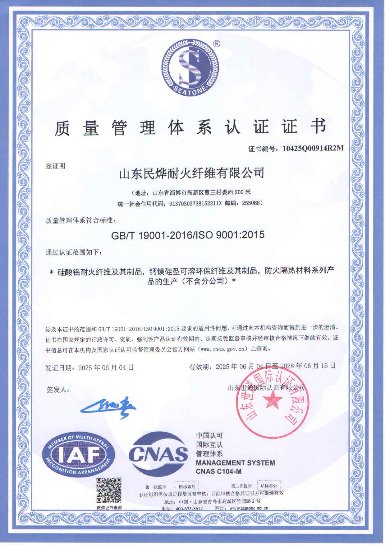 • 2025年質(zhì)量體系認(rèn)證證書